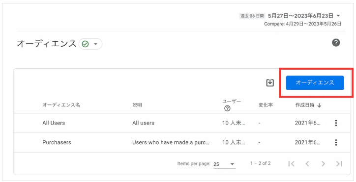 「オーディエンス」をクリックし、作成画面へ移動します。