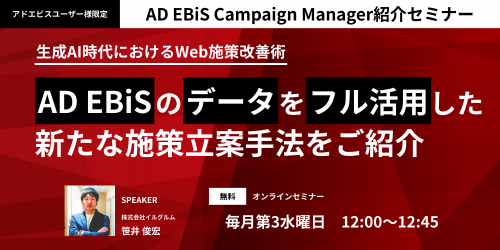 毎月開催|-生成AI時代におけるWeb施策改善術-AD EBiSのデータをフル活用した新たな施策立案手法をご紹介