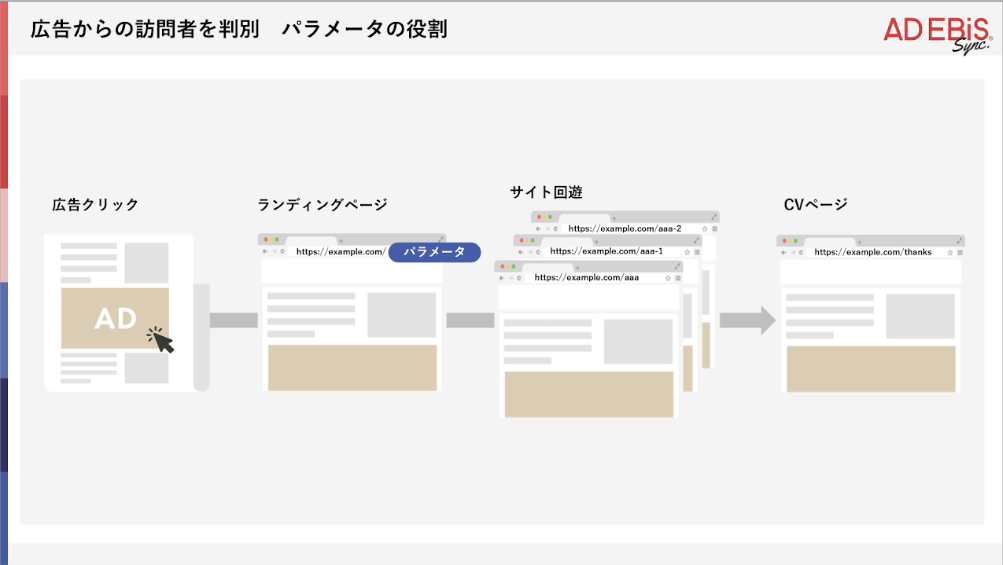 ユーザーがどの広告からサイトに訪れたかの目印になるのがパラメータです。