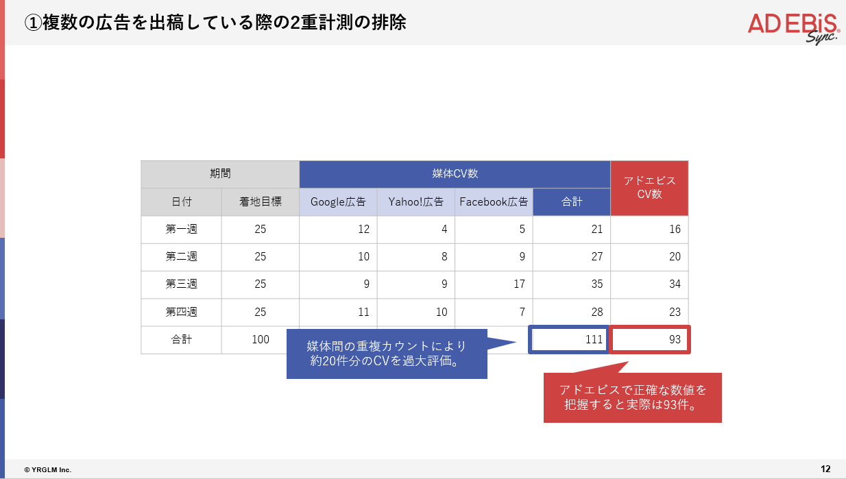 統一された計測ロジックにより、全媒体を公平に評価することが可能です。